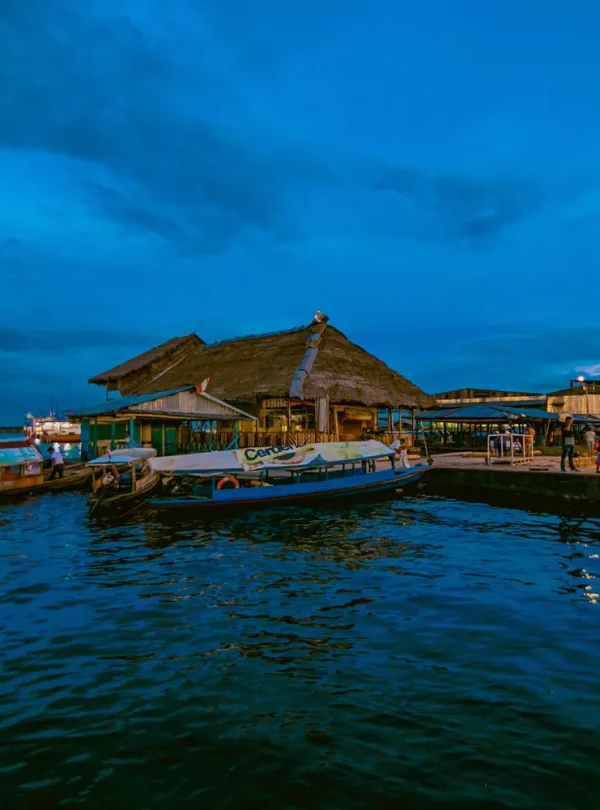 Recogida en el aeropuerto o hotel y recorrido por el centro histórico de Iquitos, visitando lugares emblemáticos como la Casa de Hierro y el Hotel Palace. Luego, navegaremos por el río Itaya y el Amazonas, disfrutando de una vista panorámica del puente que une la ciudad con el campo. Visitaremos el Fundo Pedrito, hogar del Paiche (el pez de agua dulce más grande) y la planta Victoria Regia. Continuaremos hasta Cumaceba Ecolodge, donde se asignarán las cabañas. Después del almuerzo, realizaremos una caminata para explorar la flora y fauna, con la opción de alimentar a los monos ardilla. En la noche, excursión en canoa por la Laguna Shansho para ver caimanes pequeños. Cena y relatos sobre los mitos de la selva. Noche en Cumaceba Ecolodge.